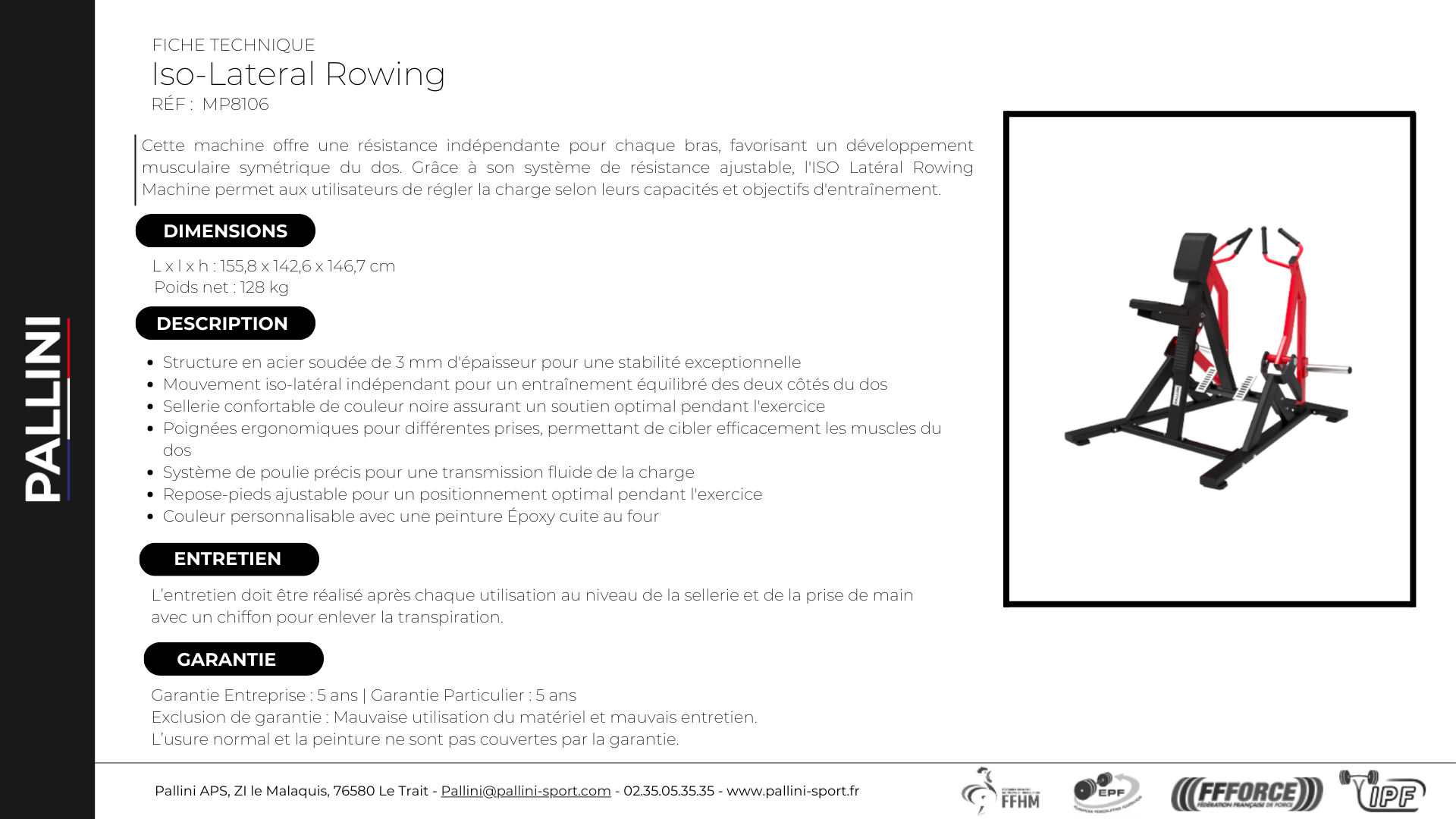 Cette machine offre une résistance indépendante pour chaque bras, favorisant un développement musculaire symétrique du dos. Profitez d'une amplitude de mouvement optimale et d'une ergonomie exceptionnelle pour des résultats supérieurs.