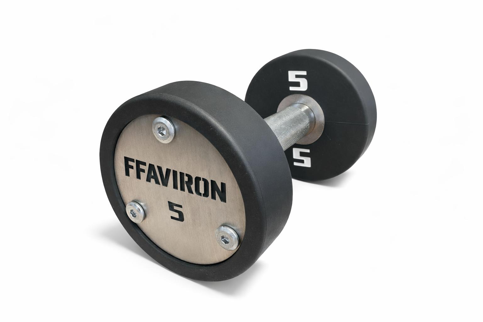 Custom PU dumbbell set, with laser-cut steel plate customized with your image and logo. Sturdy dumbbells, 5-year guarantee. Can be produced for complete sets from 2.5kg to 50kg minimum.