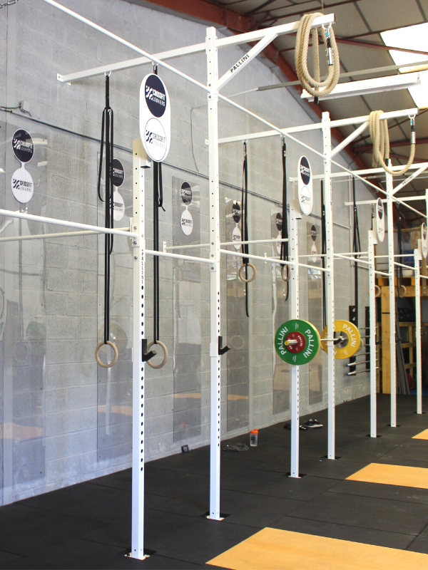 - Integration of peg board support on a rig upright (leg-free climbing)