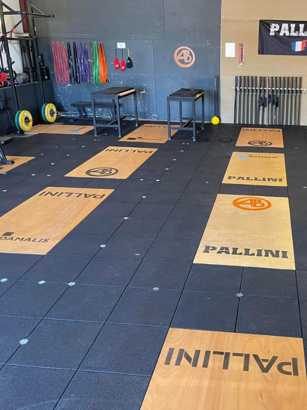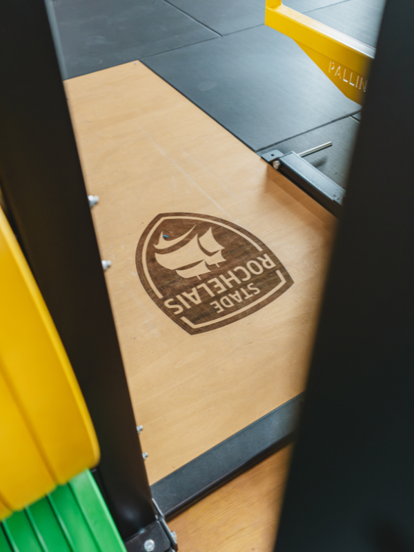Customizable and integrated wooden tabletop with your logo, ideal for integration into a CrossFit® affiliated box or weightlifting club.