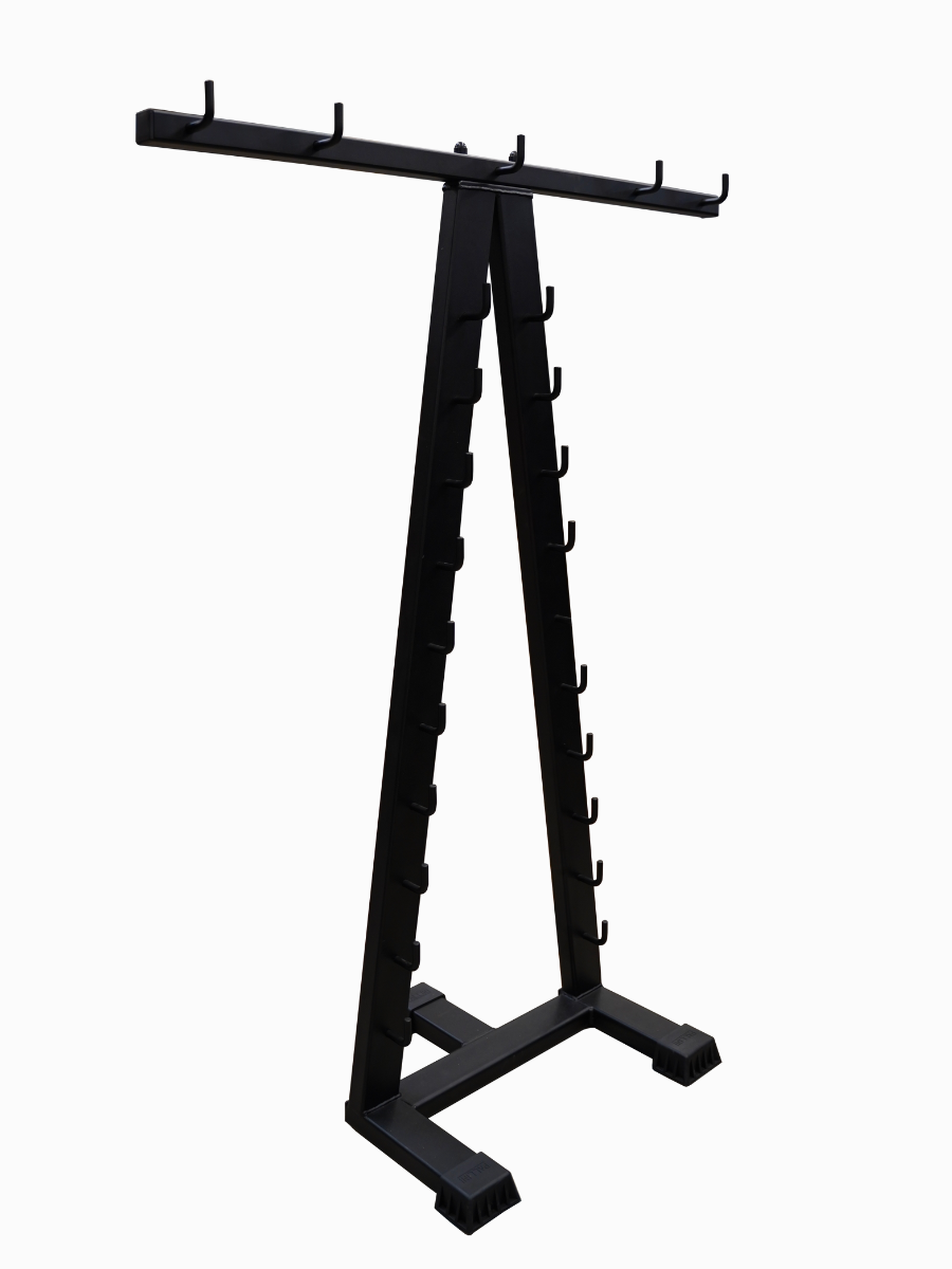 Storage with 11 bars and 6 hooks for storing various accessories.
