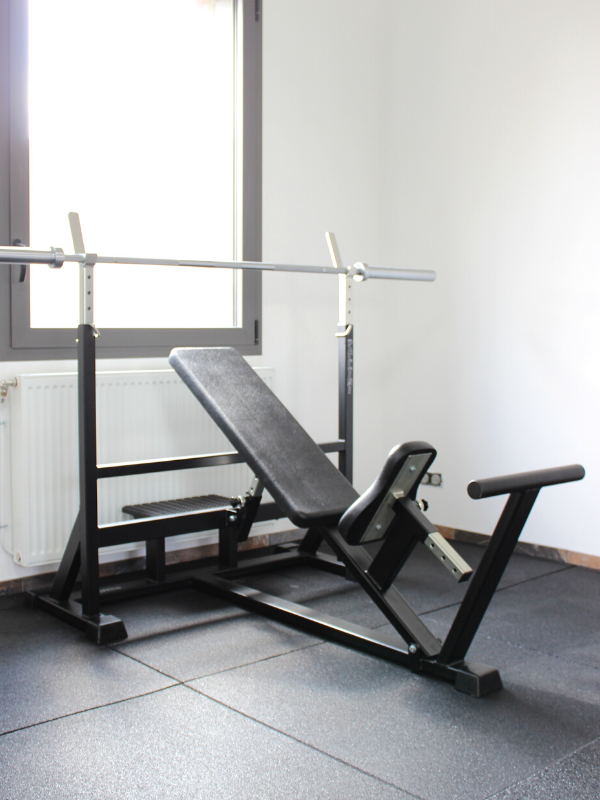 Ce banc développé incliné à 45° permet l'exécution de l'exercice du développé incliné en sollicitant la partie haute des muscles pectoraux, ainsi que les muscles deltoïdes et triceps.