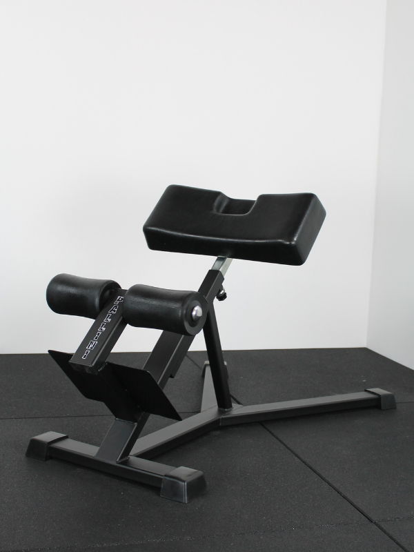 Banc lombaire incliné à 45° permettant le travail des muscles lombaires par élévation du buste.