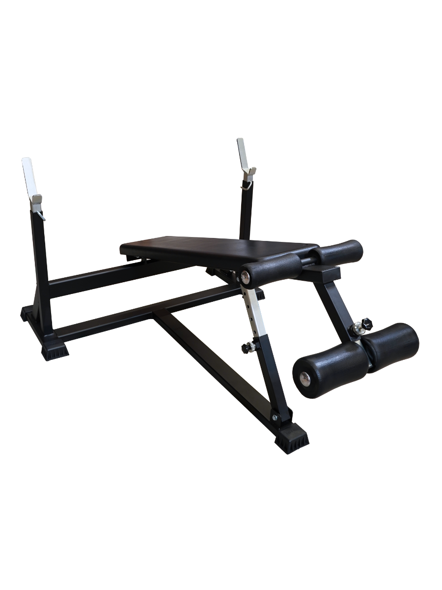 Banc réglable permettant de travailler en position inclinée, à plat et déclinée. Le banc est muni de rouleaux qui permettent un meilleur maintien de l'athlète dans l'exercice.