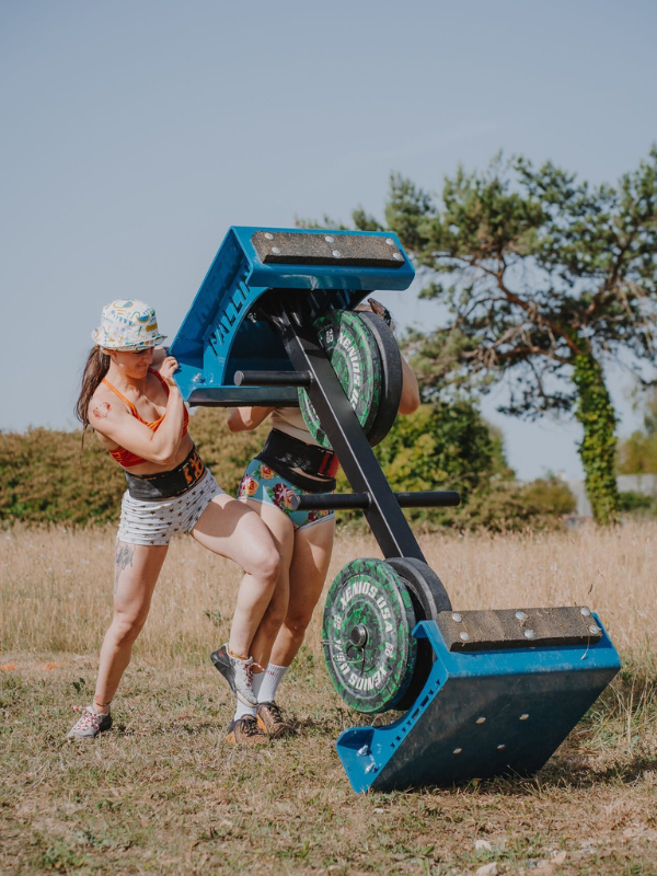 Le Flip Sled permet de développer sa force et sa puissance. Il pèse 150 kg à vide et peut être chargé avec 3 niveaux de disques.