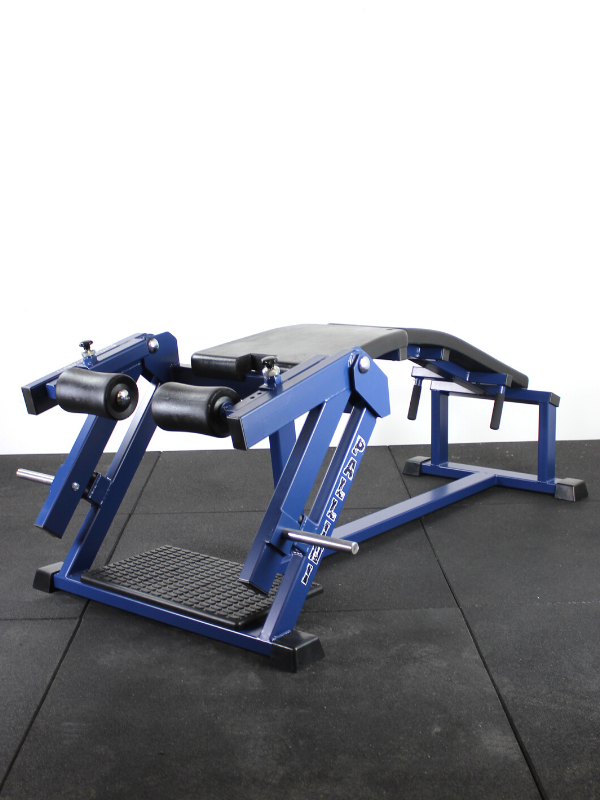 Machine pour travailler les muscles ischios jambiers en position allongée en charge libre. Le travail s'effectue par un fléchissement des jambes en rapprochant les talons des muscles fessiers.